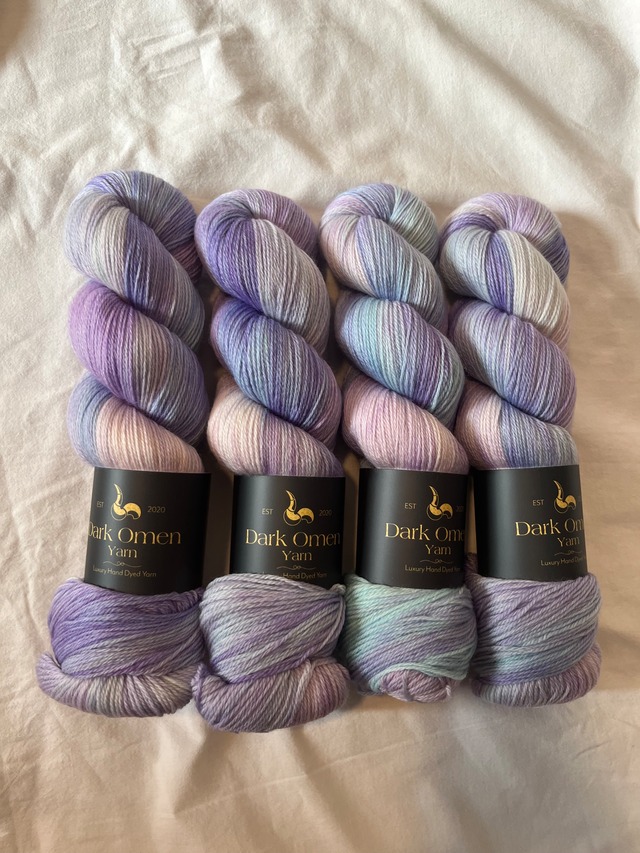 Vaporwave Sky Dark Omen Yarn(ダークオーメンヤーン) Merino Plus 100% Merino メリノウール 400m/100g Superwash Fingering 糸は3plyでショールやセーターにおすすめの上質のFingering毛糸です。 針は3mm-3.75mmをおすすめしています。 ☆イタリアより直輸入、日本ではマーグスヤーンショップのみ販売☆ ダイヤー・プロフィール フランチェスコ ロサ (Francesco Rosa) 2016年から2019年まで、La Bien Aimée にて手染め糸の世界を学び、2020年8月に自身のブランド Dark Omen Yarn(ダークオーメンヤーン) を立ち上げ、今年5周年を迎える。2024年マドリード開催のLove Yarn Madrid で Stephen Westと出会い、Stephen&Penelopeとのコラボレーションを始める。 また、長年にわたり日本語を学んでいて日本語能力試験3級も合格している。最近は大学院に戻り日本語の勉強を続けているフランチェスコ。"いつか日本のニッターさんと日本語で話したい"と夢を語る。 ブランドのはじまり Dark Omen Yarn(ダークオーメンヤーン) は、 心の奥にひそむ小さな悪魔たち──ふとした気まぐれや、胸のざわめき、忘れかけていたときめきに“色”を与えたいという想いから生まれました。 明るくてユニコーンのような色の毛糸たちが並ぶ世界の中で、もう少しだけ影のある、でもどこか愛らしい糸を届けたい。そんな少し風変わりな感性と、遊び心がこのブランドの始まりです。 気軽に楽しめる優しい色合いを染める時もあるけど、染め釜のそばではいつだって小悪魔たちがソワソワ。 気まぐれな夜には、釜がぐつぐつと騒ぎ出し、 思いもよらない色がひょっこり生まれることがあります。 それが、「大釜"カウルドロン"のいたずら(Cauldron Curses)」。 まるで釜の底から跳ね出した魔法のしずくのように、ミステリアスで予測できないわくわくする色がうまれます。 Dark Omen Yarn の色は、自然の光や影、80年代レトロゲームの残像、そして日々の中でふと浮かんだ小さな感情や夢のかけらからインスピレーションを受けています。 どの糸にも少しだけ魔法と物語が混ざっていて、 編む人の手の中でまた新しいストーリーを紡いでほしい--- そんな思いは、マーグスの「編み物の魔法をあなたに」というアイディアにも通じるところがあり、このコラボレーションが決定するきっかけとなりました。多くの方に手にとっていただけます様に。